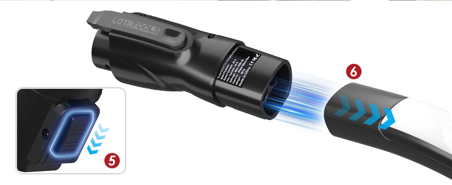【Important Note】: When using TSL Destination Chargers, ensure that the output is less than 60Amp. And allow up to 30 seconds to pass after connecting the adaptor the TSL charger before connecting the other end to your EV with J1772 charging interface. Before use, please make sure that the output port of TSL charging pile is tightly connected with the charger adapter.