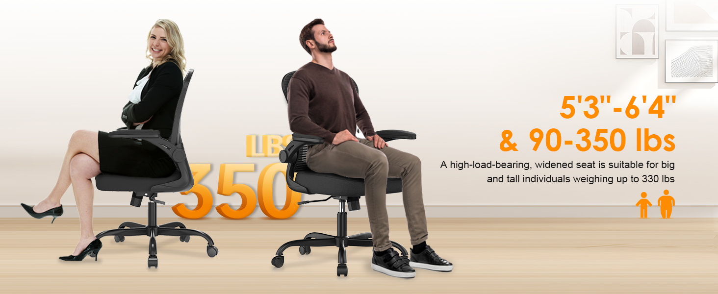 - MULTIPLE ADJUSTMENT AND HEAVY CAPACITY: The premium office chair is highly adjustable to accommodate a wide range of bodies. The seat’s height can be adjusted by 4 inches and its unique recline features allows you to tilt the backrest up to 135°. What's more, the quality materials lend this big and tall desk chair a 330-pound weight capacity. Overall it fits for varying body shapes, as well as heavy people, bringing you great comfort and relaxation