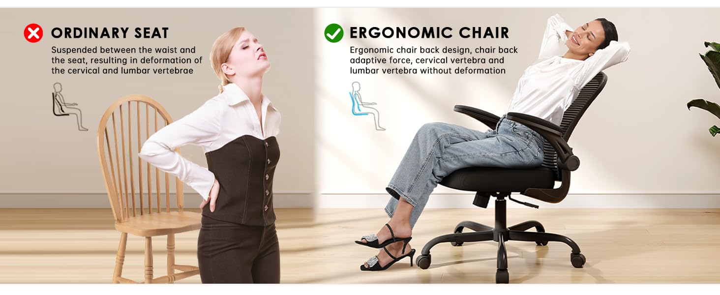 Ergonomic Office Chair, High Back Mesh with 330LBS Capacity, Flip-up Armrests, Black