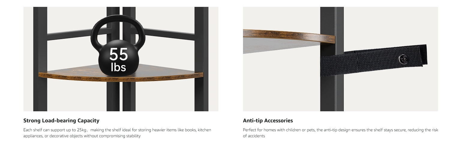 - 【Space-Saving Elegance】 OtterOasis corner shelf stand is designed to optimize your limited space with its 90° angled structure that fits the wall perfectly. The corner bookcase has rounded edges to avoid accidental bumps and includes a anti-tip device for enhanced safety, suitable for family with children and pets. This tall corner shelf not only maximizes your space but also ensures it is utilized in a secure and stylish manner