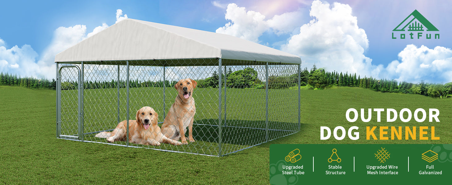 - 【ENHANCED DURABILITY】LotFun outdoor dog kennel with roof features an upgraded construction with 1.26" galvanised metal tubing and 2.4mm thick steel mesh for increased strength and resistance to rust