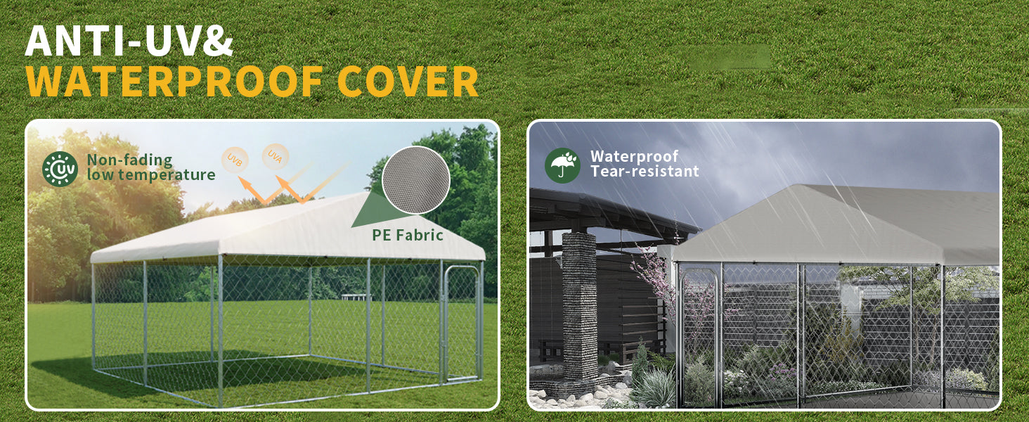 - 【SPACIOUS PLAY AREA】Dimensions: 118" x 118" x 70". This outdoor dog kennel is perfect for small, medium and large dogs, providing an ideal space for training, resting, and outdoor play