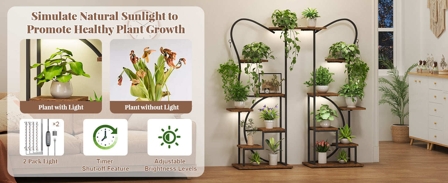 - Grow Lights for Healthy Plants: Each tier is equipped with built-in grow lights, ensuring your plants receive the optimal light they need to thrive, even in low-light environments. Ideal for year-round indoor gardening.