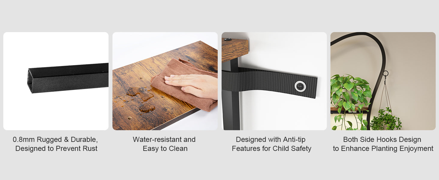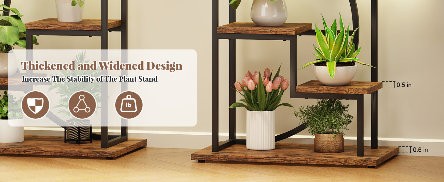 - Durable and Stable Construction: Crafted with a sturdy metal frame and high-quality wooden shelves, this plant stand offers excellent durability and stability, securely supporting multiple plants of varying sizes and weights.
