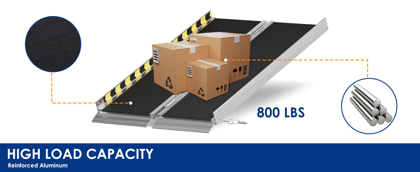 - Note:We kindly suggest taking a moment to review our buying guide to ensure you select a ramp that best fits your step dimensions before making a purchase, . The 3FT ramp is recommended for heights between 4 and 12 inches and supports up to 800 pounds. Please note that longer ramps may experience slight flexing during use, which is perfectly normal—they’ll quickly return to their original shape. Thank you for choosing us!