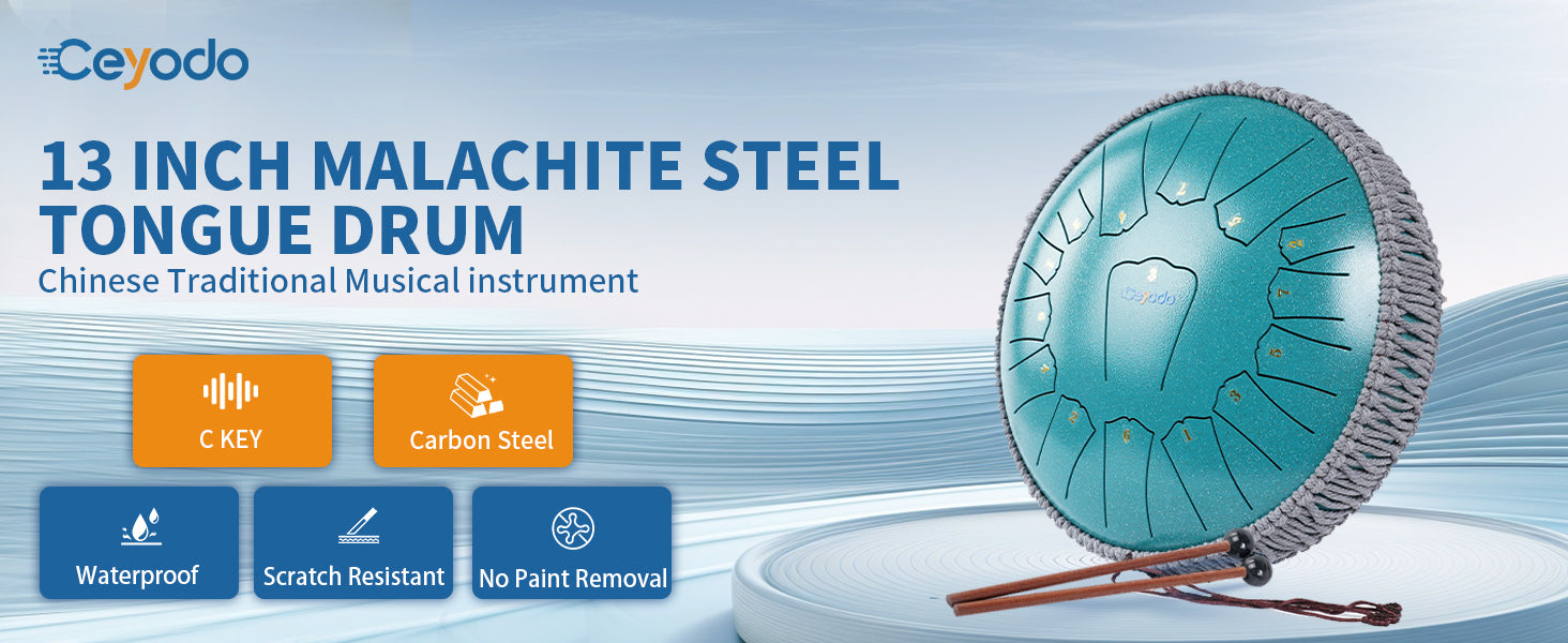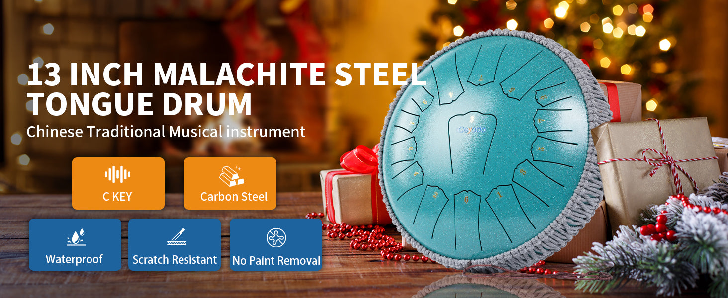 13" Steel Tongue Drum, 15-Note Malachite Drum for Meditation, Yoga, Percussion & Gift