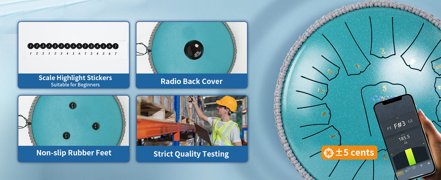 - Standard Intonation & Tone Quality: Our steel tongue drums are made of carbon steel for superior water resistance, corrosion resistance and scratch resistance. Each ethereal drum is quality tested to ensure intonation and tone.