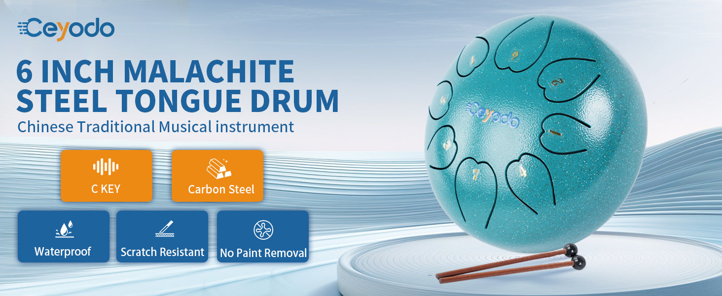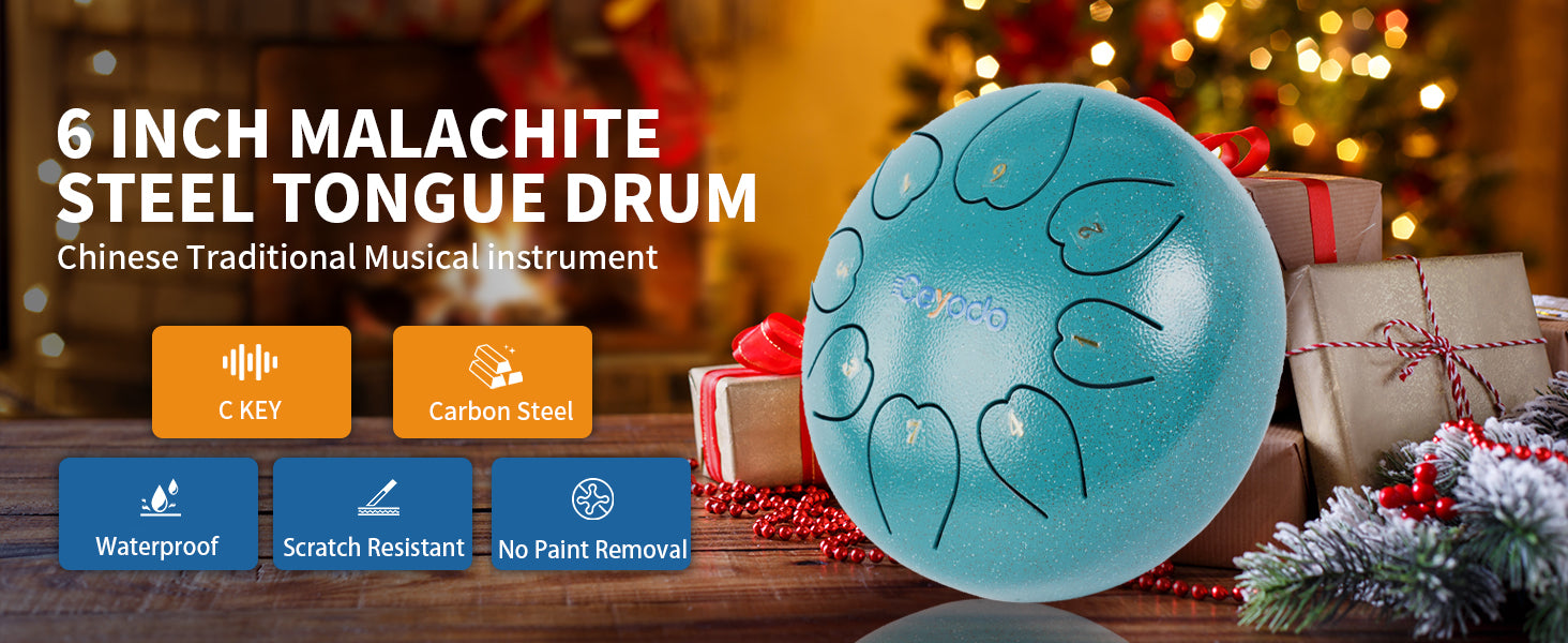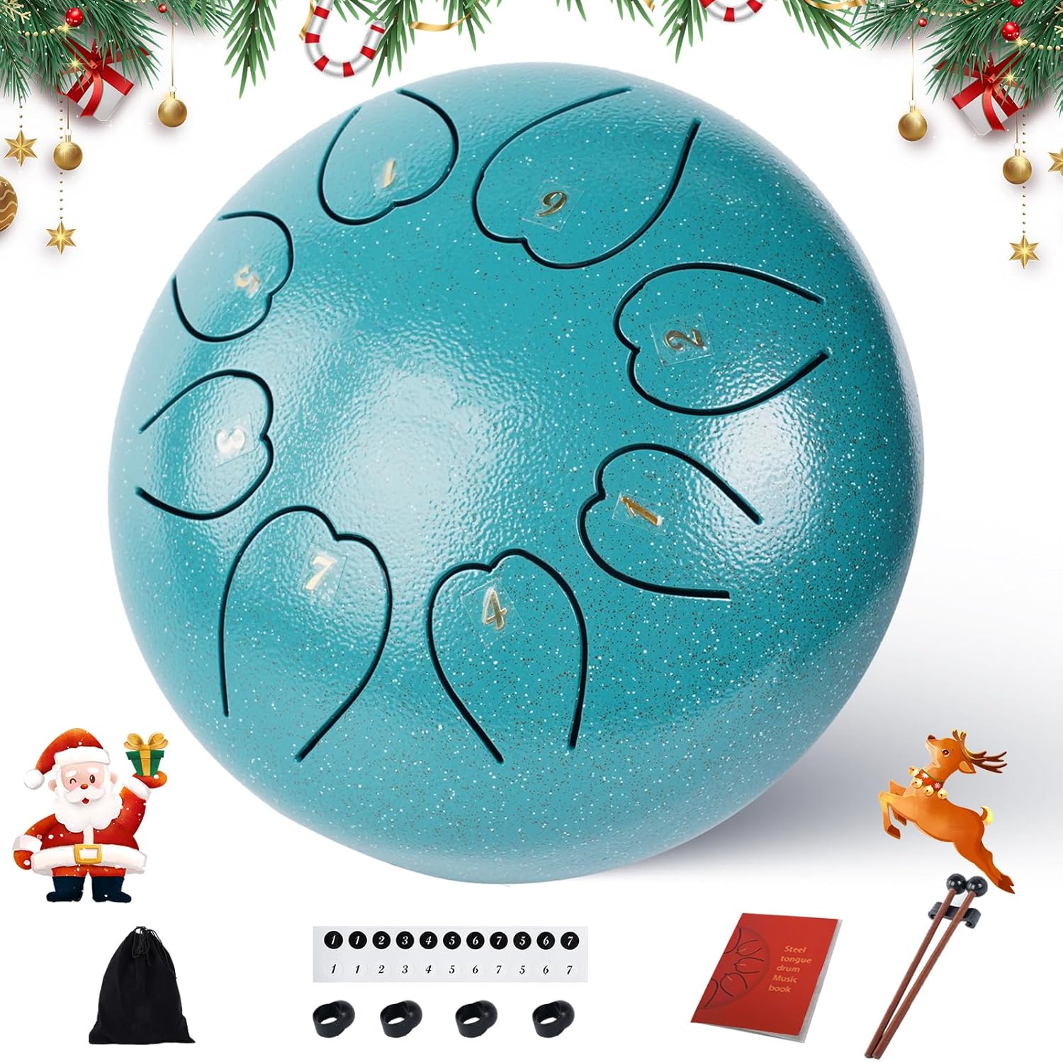 6" Steel Tongue Drum, 8-Note Malachite Drum for Meditation, Yoga, Gift for Family & Friends