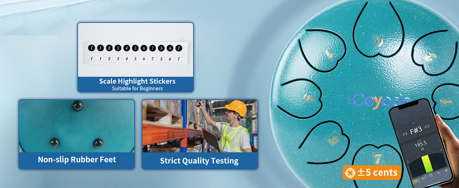 - Standard Intonation & Tone Quality: Our steel tongue drums are made of carbon steel for superior water resistance, corrosion resistance and scratch resistance. Each tongue drum is quality tested to ensure intonation and tone.