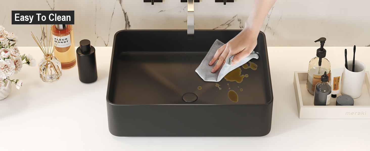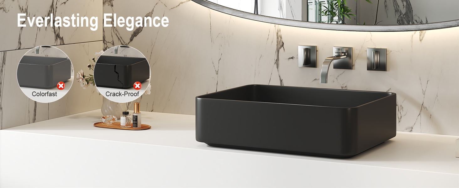 - Hassle-Free Maintenance:The edges of our ceramic rectangle vessel sink are polished to perfection. They are smooth and less likely to accumulate water, effectively preventing scratches. The high-quality baked glaze makes cleaning a breeze. With low water absorption and minimal dirt adhesion, keeping your bath vessel sink clean has never been easier.