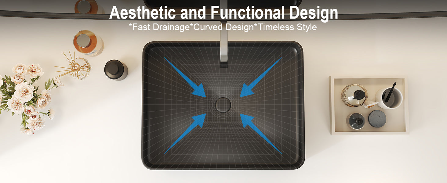 - Stunning Design:With its rectangular shape, our bathroom vessel sink exudes understated luxury, like a beautiful work of art. It effortlessly becomes the centerpiece of your bathroom, adding a touch of sparkle and creating a Simple and fashionable home life.