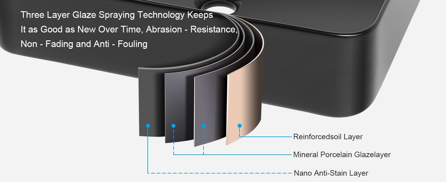 - Luxurious Glazing:The bathroom above counter sink features a thickened glaze created through a three-layer spraying technique. Experience a bath sink with an exquisitely smooth texture that is not only wear-resistant but also guaranteed not to fade. It's a touch of elegance for your bathroom.