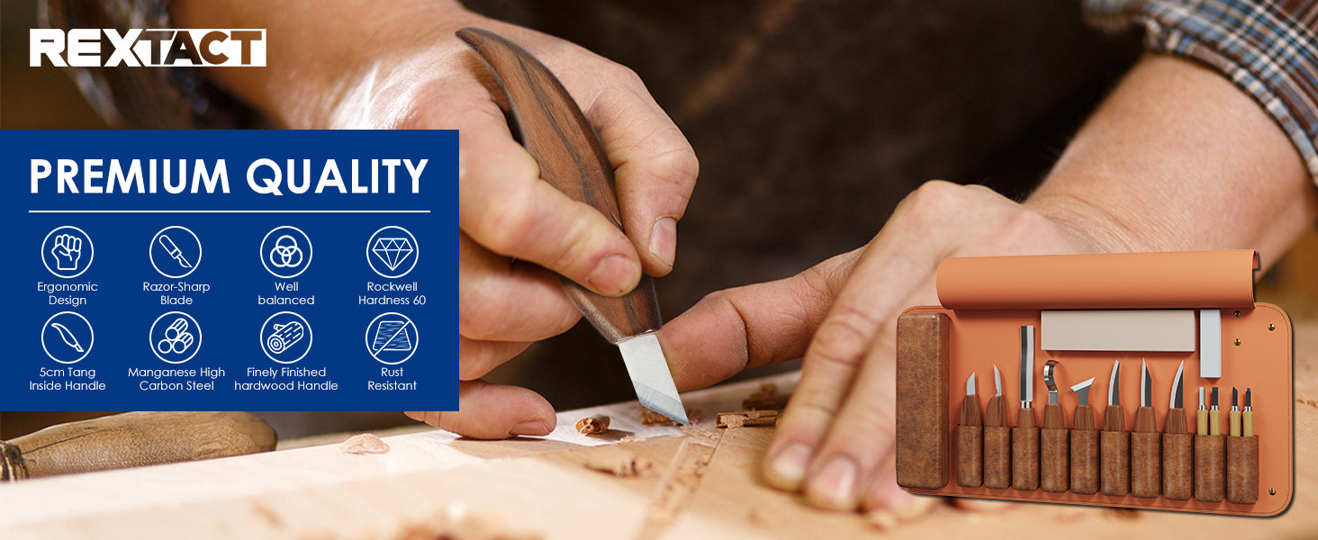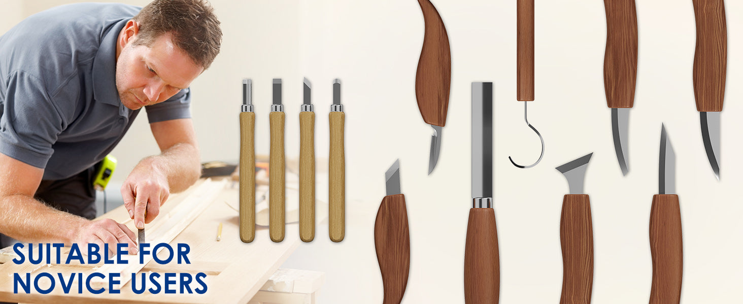 - 【High-Carbon Steel Blades for Lasting Precision】 Our wood carving tools set features high-carbon steel blades for sharpness, edge retention, and corrosion resistance. Perfect for any wood whittling kit, these carving knife wood blades provide smooth, precise cuts for both delicate and heavy-duty projects, ensuring an efficient and enjoyable carving experience.