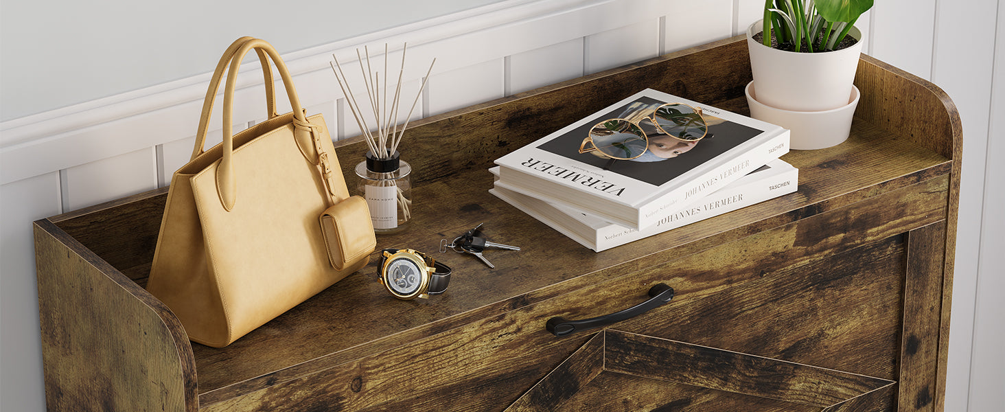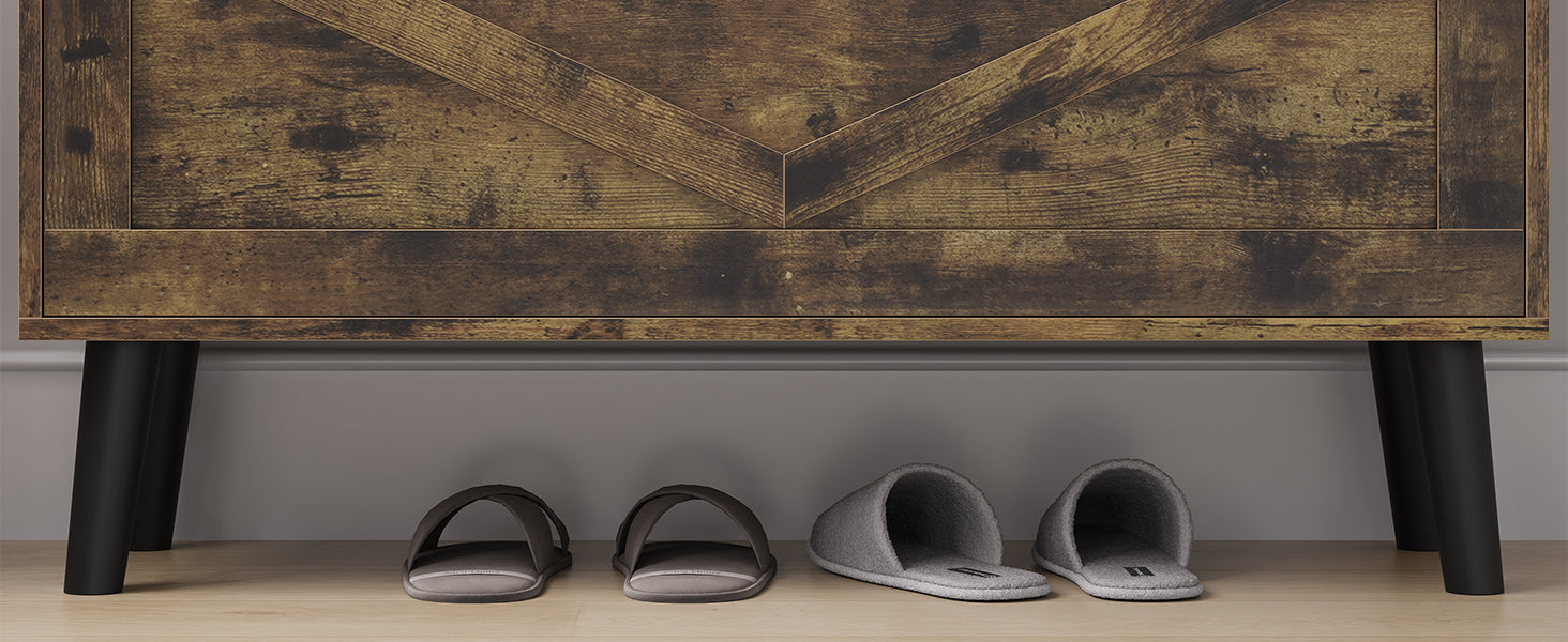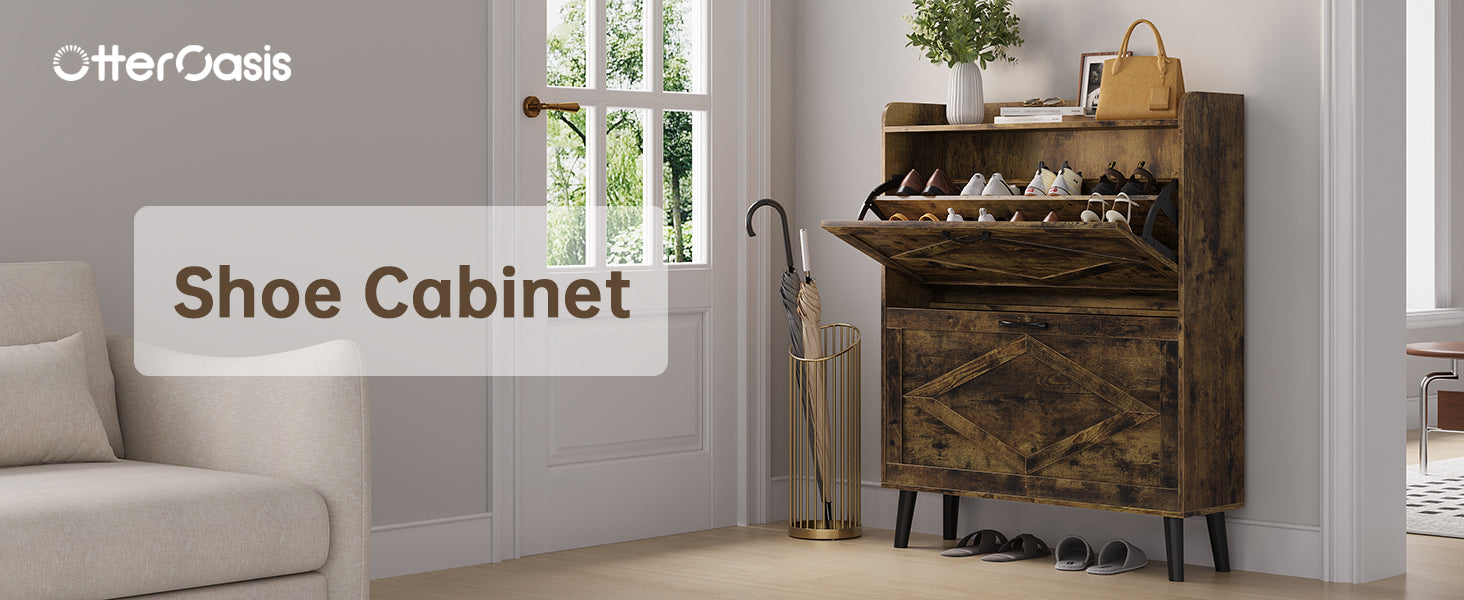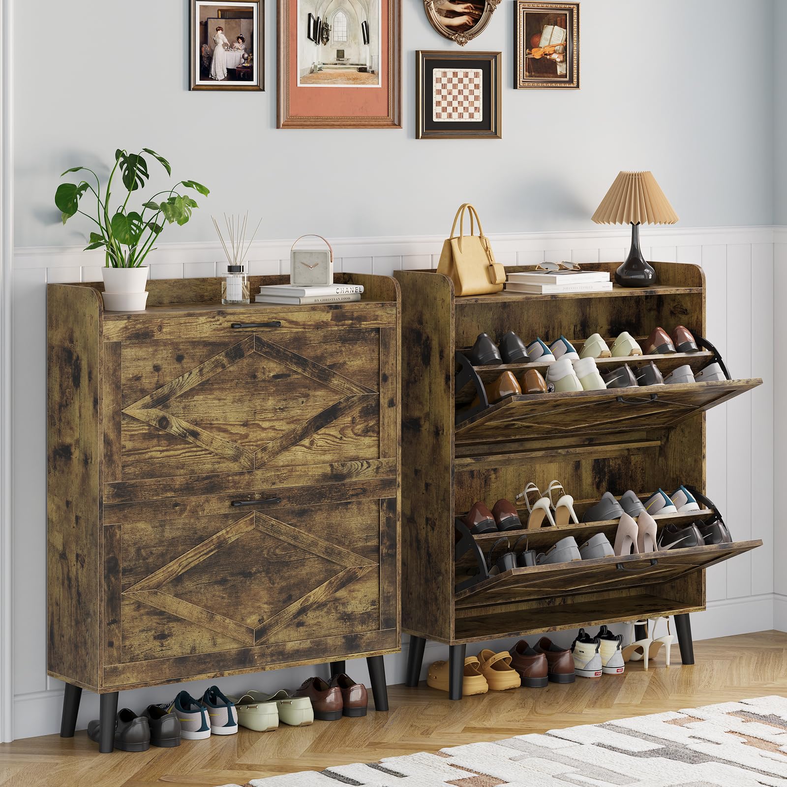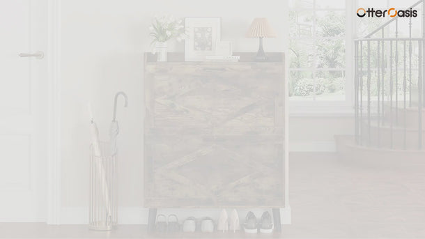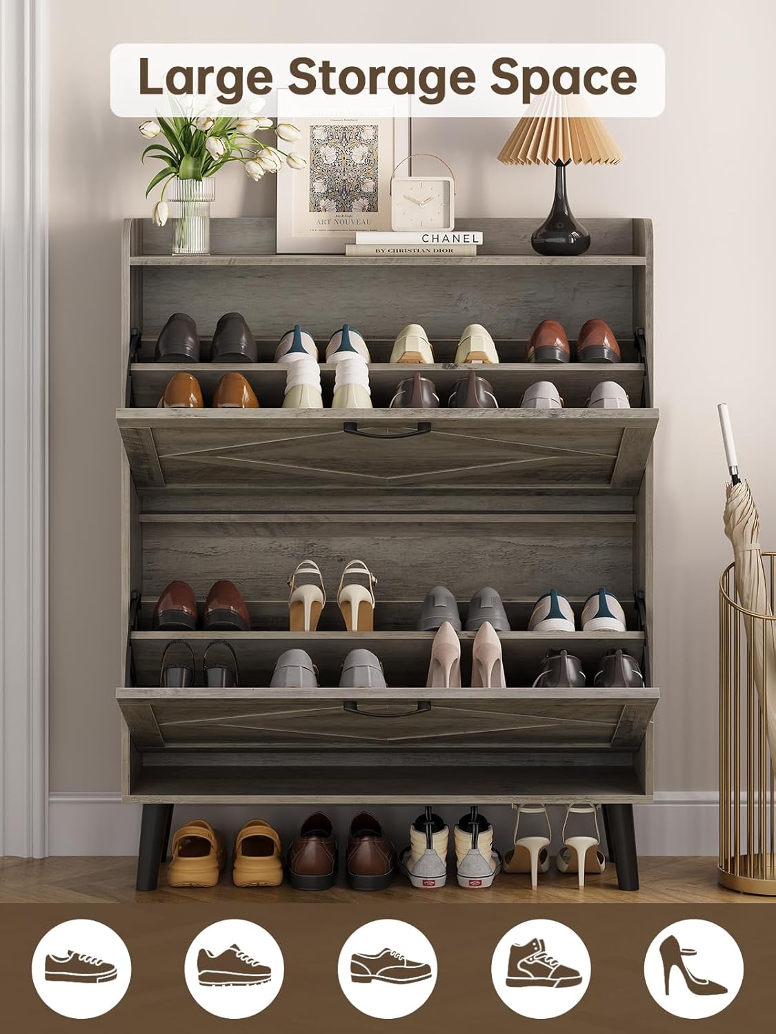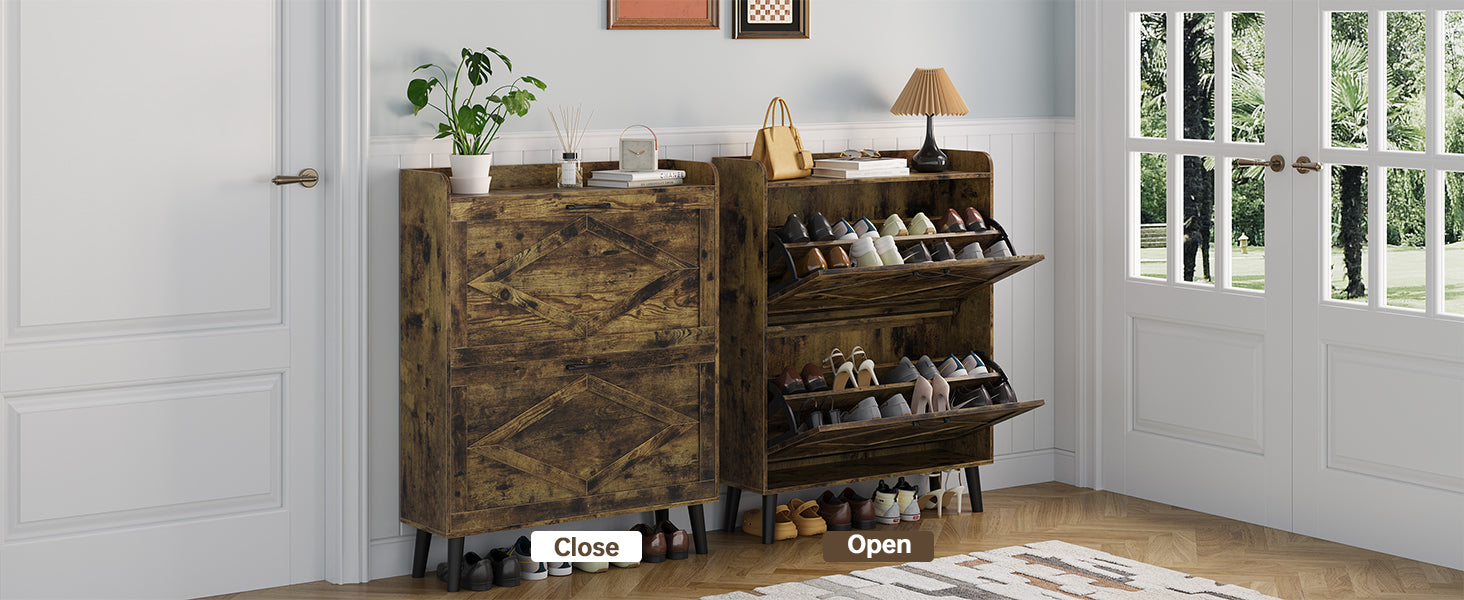 - Farmhouse Shoe Storage Cabinet: The washed gray wood grain and chic rhombic patterns complement this farmhouse shoe storage cabinet; As an entryway shoe cabinet, it blends with various decors and keeps your entryway tidy