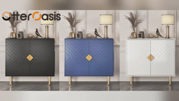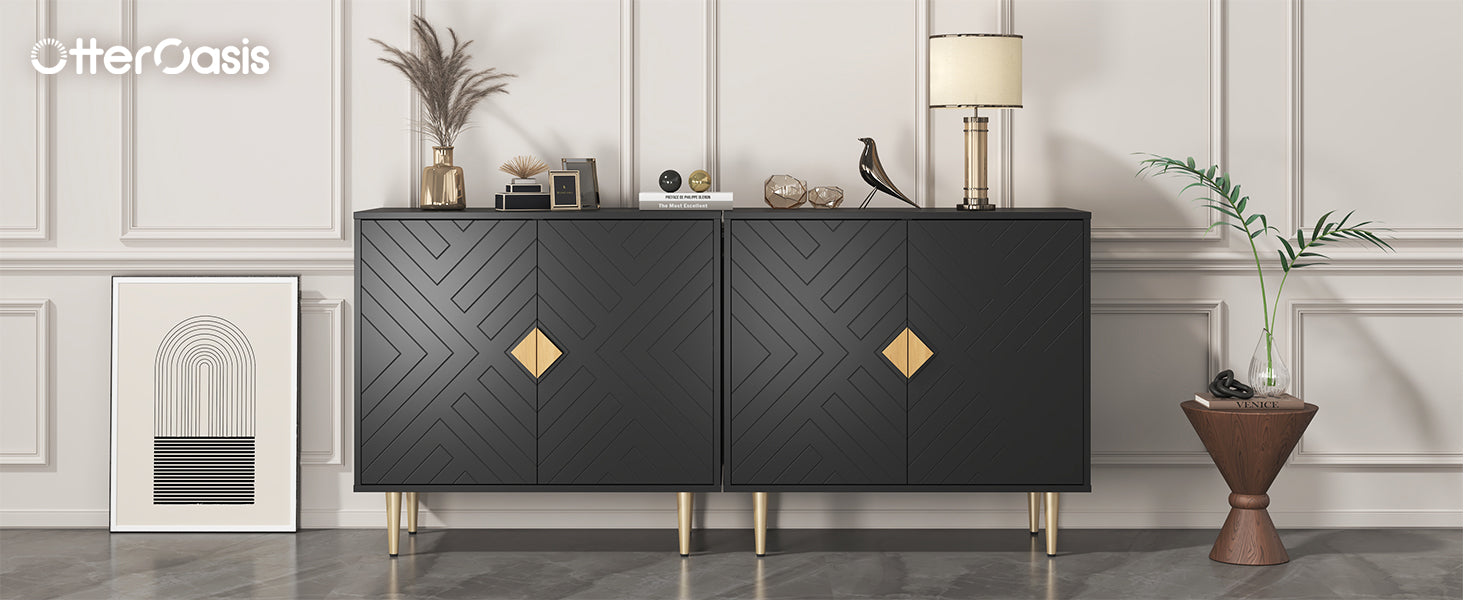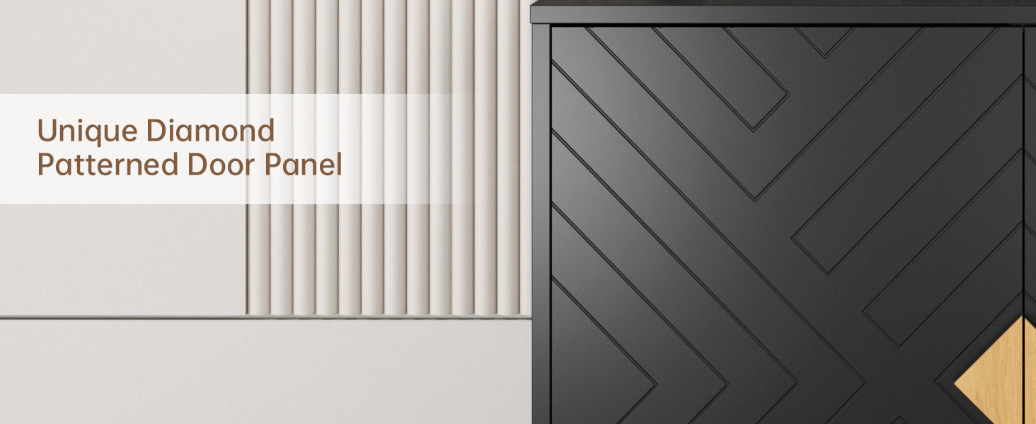 - 【Chic Modern Design】 The OtterOasis sideboard cabinet features diamond-shaped wooden handles and diamond patterns on its doors, adding a stylish and unique touch to various home decors.