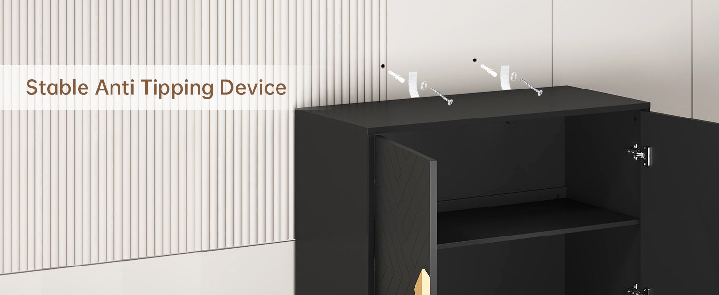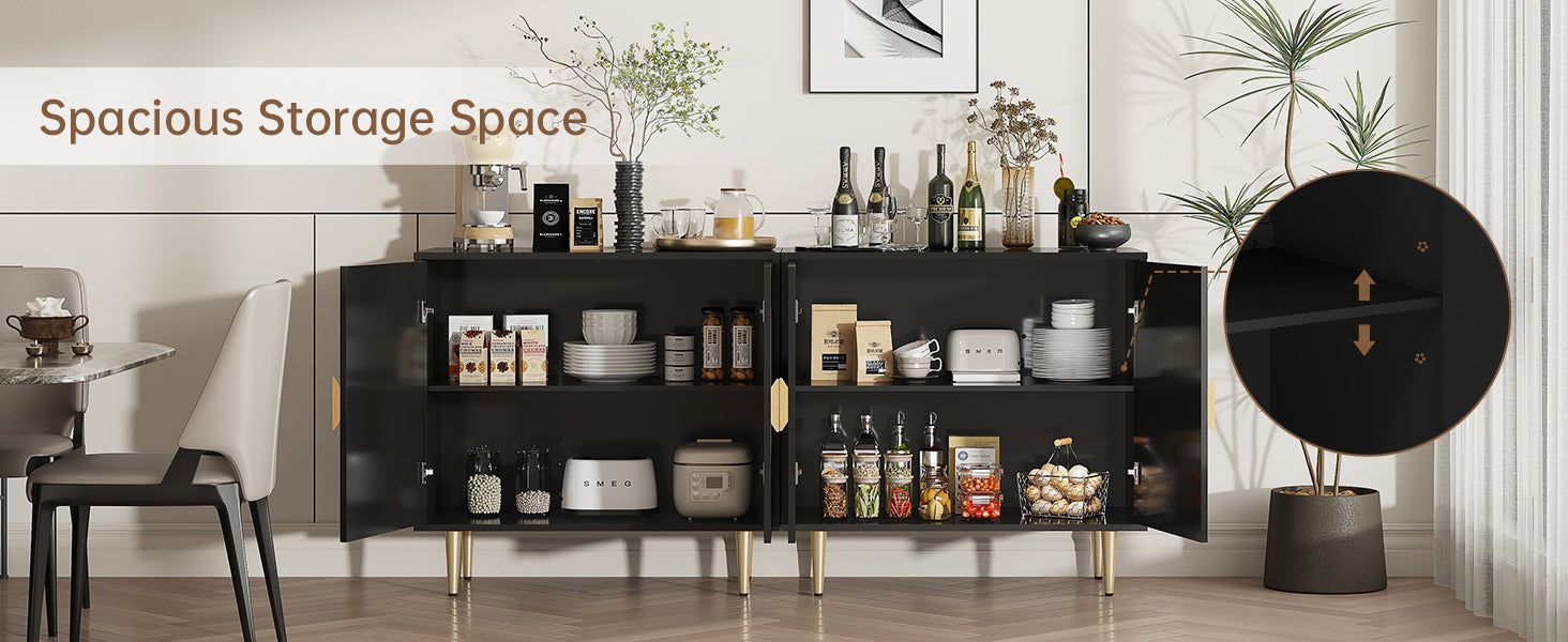- 【Sturdy and Durable】 Crafted of premium P2 MDF boards that enhance durability, the sideboard buffet cabinet with storage also has high-quality metal legs and an anti-tipping device on the back to ensure stability in daily use. The cabinet doors, with damping hinges as buffers , allow smooth and quiet operation.