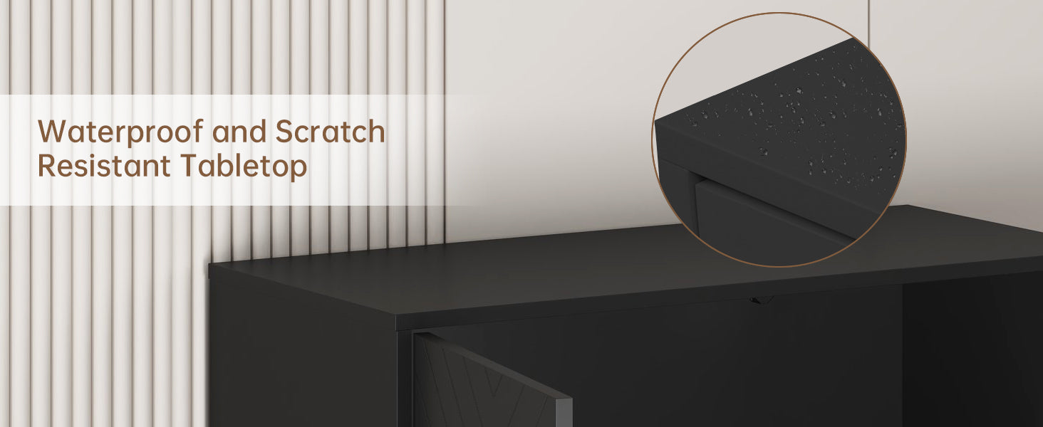 - 【Versatile and Easy to Clean】 This black sideboard caters to your diverse storage needs in different scenarios. It goes well with living room, bedroom, dining room, kitchen, and entryway. Produced with unique techniques, the top of the sideboard is waterproof, scratch-resistant, and easy to clean with a damp cloth.