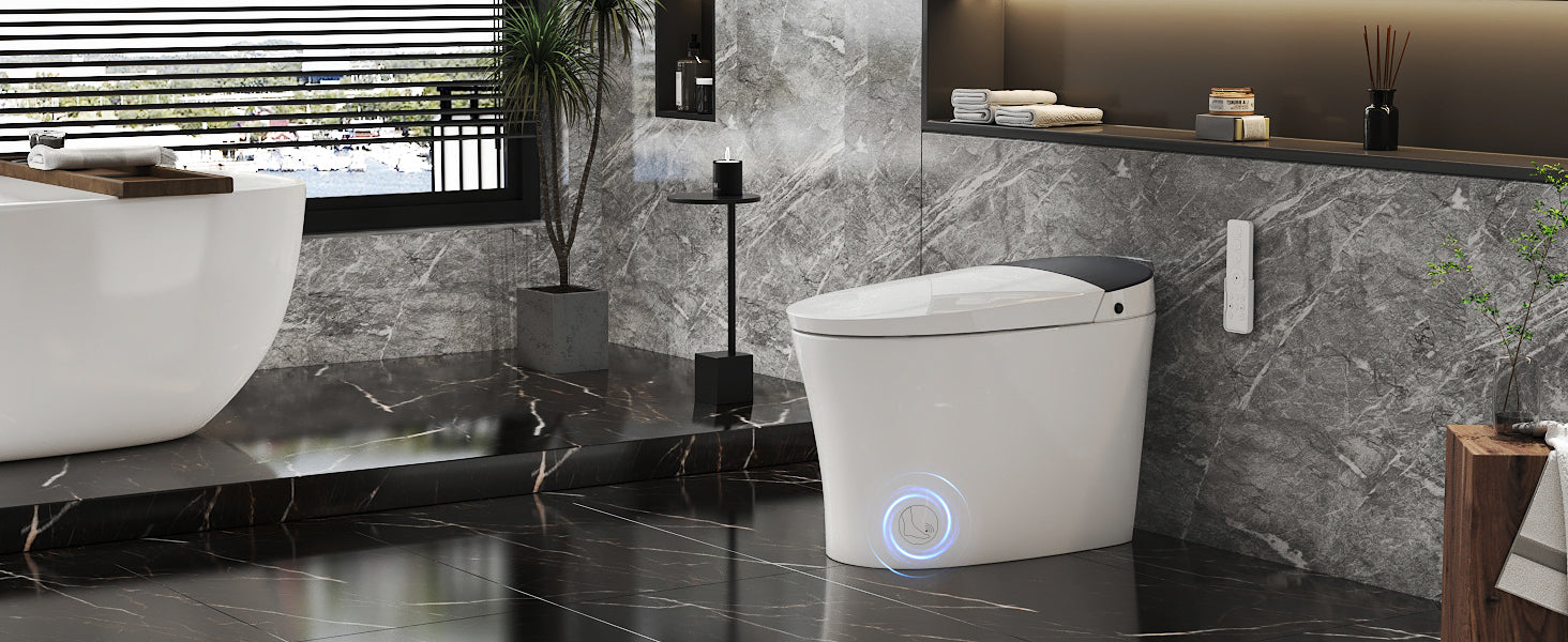 Smart Toilet with Bidet, Built-in Tank, Powerful Flush, Auto Open/Close Lid, Foot Sensor, Heated Seat, Instant Warm Water
