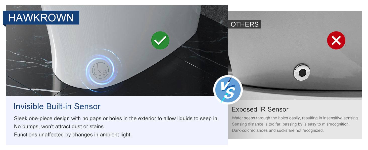 - πππ§ππ₯π’π’π π¦π ππ₯π§ π§π’ππππ§ - HAWKROWN smart toilet has an intelligent design with automatic lid opening, intelligent induction heating seat, instant hot water, rinse function, warm air drying, light-sensitive night light, LED display light and remote control.