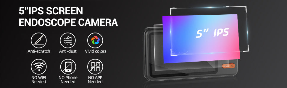 - Split View: Split view allows you to see the images from two borescopes lens simultaneously. The 5" IPS 1080HD screen enables you to see more and see clearly.