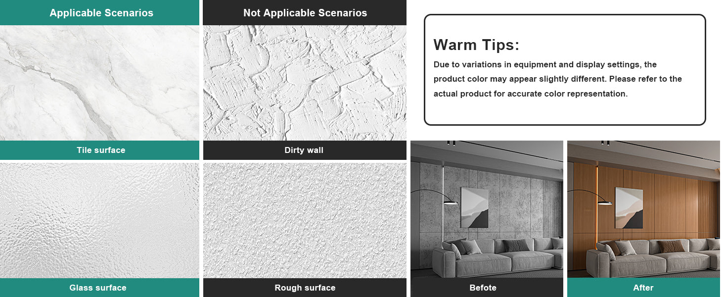 - ๐๐๐ฅ๐ ๐๐๐ก๐๐ฌ๐ข๐ฏ๐ ๐๐ง๐ ๐๐๐ฆ๐จ๐ฏ๐๐๐ฅ๐:The wood contact wallpaper offers a hassle-free installation process. Simply peel off the back liner and stick it onto any dry, smooth surface - no messy glue required. Made from PVC material with an easy-to-clean surface. For best results, use a hair dryer to preheat the adhesive area, enhancing its stickiness.